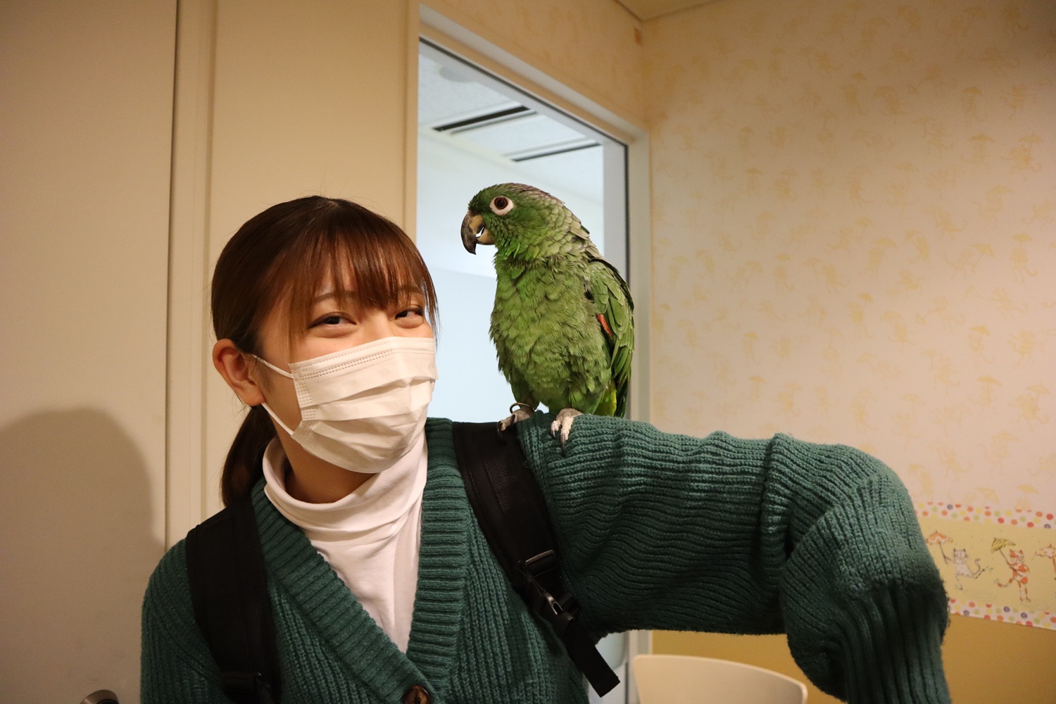 学園で保護したボウシインコのももちゃんのお世話を中心にトリの生体について勉強しています!