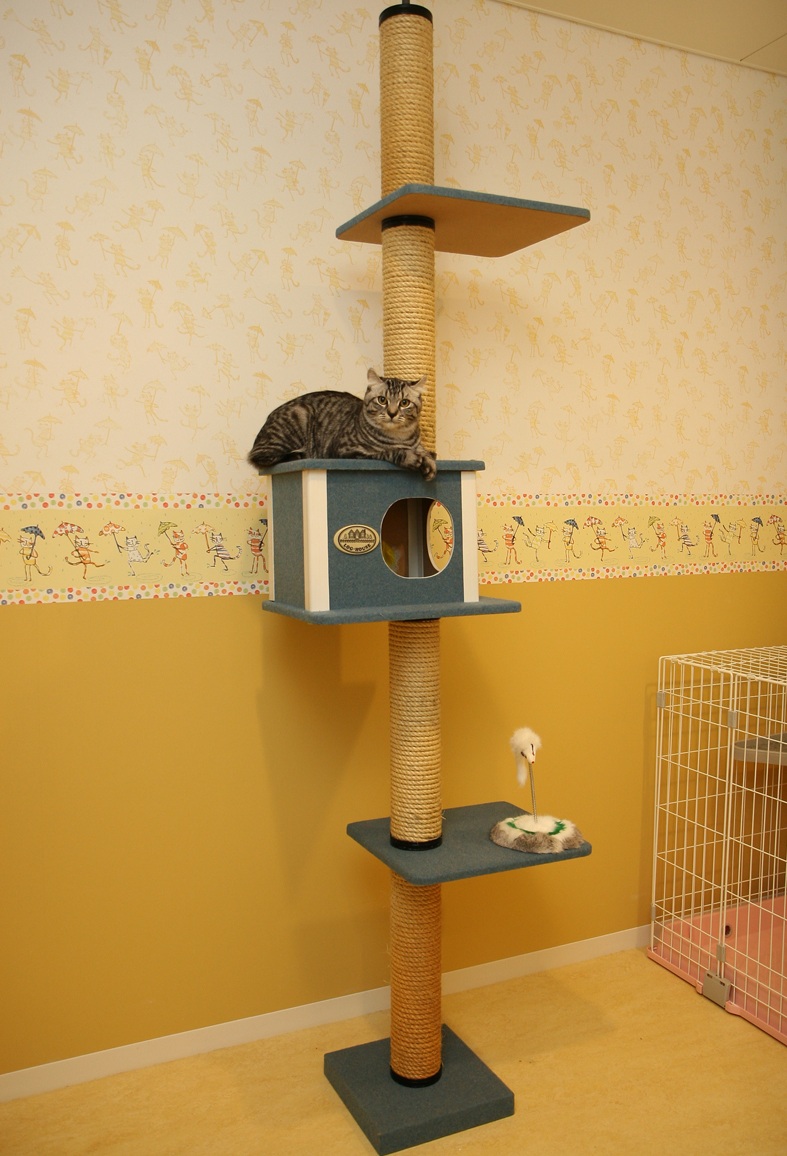 迷子になったり、捨てられ居場所のなくなったネコたちをお預かりするためのお部屋です。ネコたちが快適に過ごせる設備が整えられています。