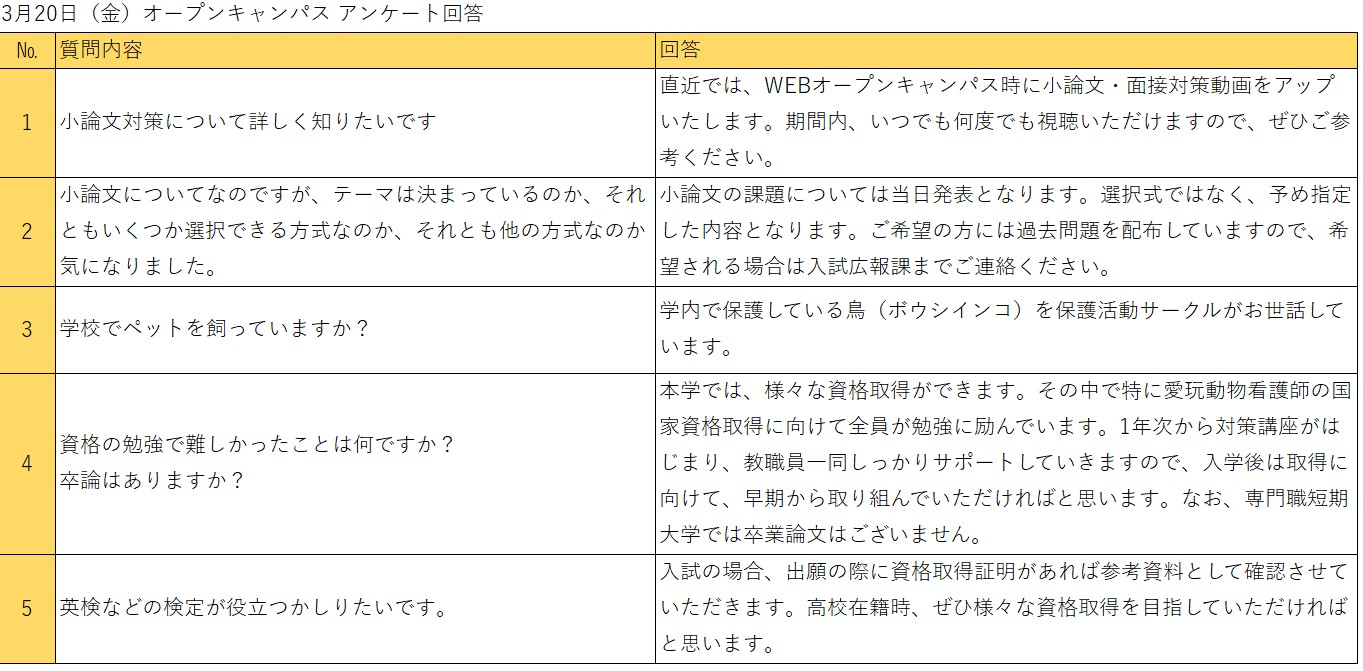 令和6年3月24日(日)オープンキャンパス アンケート回答