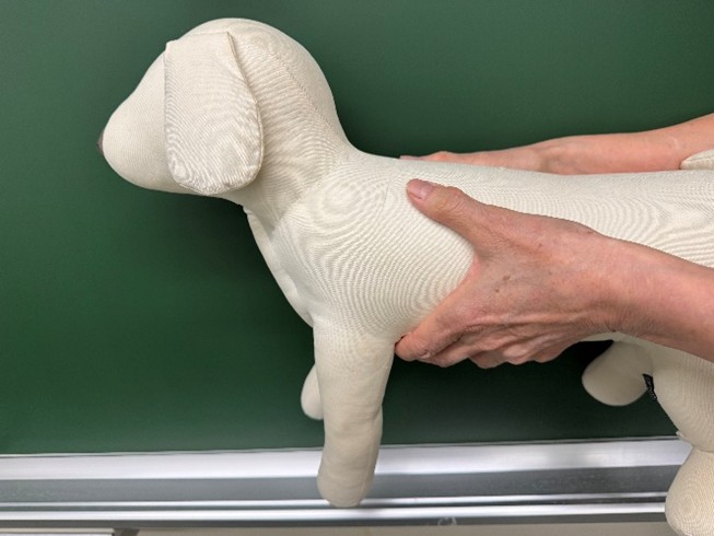 ① BCS.3:皮下脂肪5mmくらい奥のところに肋骨がはっきりと触ります。