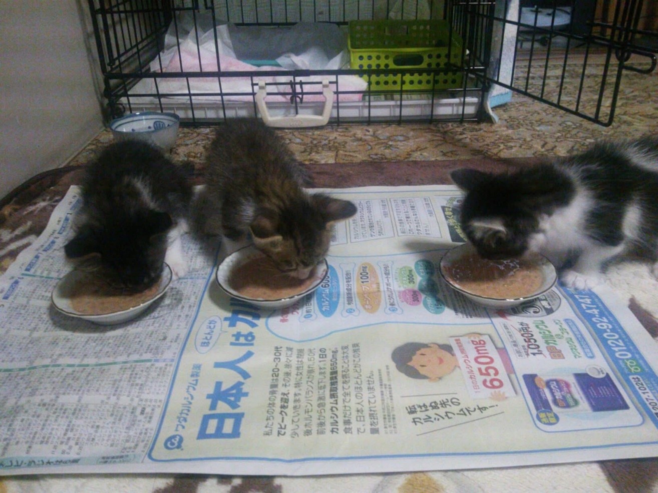写真①:子猫3頭 食事風景